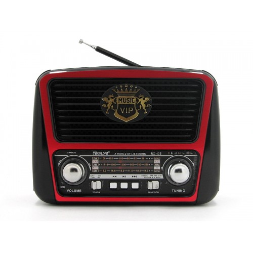 Основным назначением выступает прием радиосигнала, воспроизведение звуковых сигналов с различных устройств, в том числе, с мобильных телефонов, плееров, карт памяти и дисковых накопителей. Он позволяет качественно воспроизводить любимую музыку практически в любом месте, не зависят от электрической сети. Хорошая чувствительность на FM радио! Из дополнительных преимуществ, также имеется телескопическая антенна, встроенный фонарик и ремешок для удобной переноски на плече. Прекрасное звучание, простое управление и удобство в использовании порадует вас дома или на природе. Радиоприемник Golon RX-435 стал незаменимым спутником на даче и отдыхе, на работе и дома.