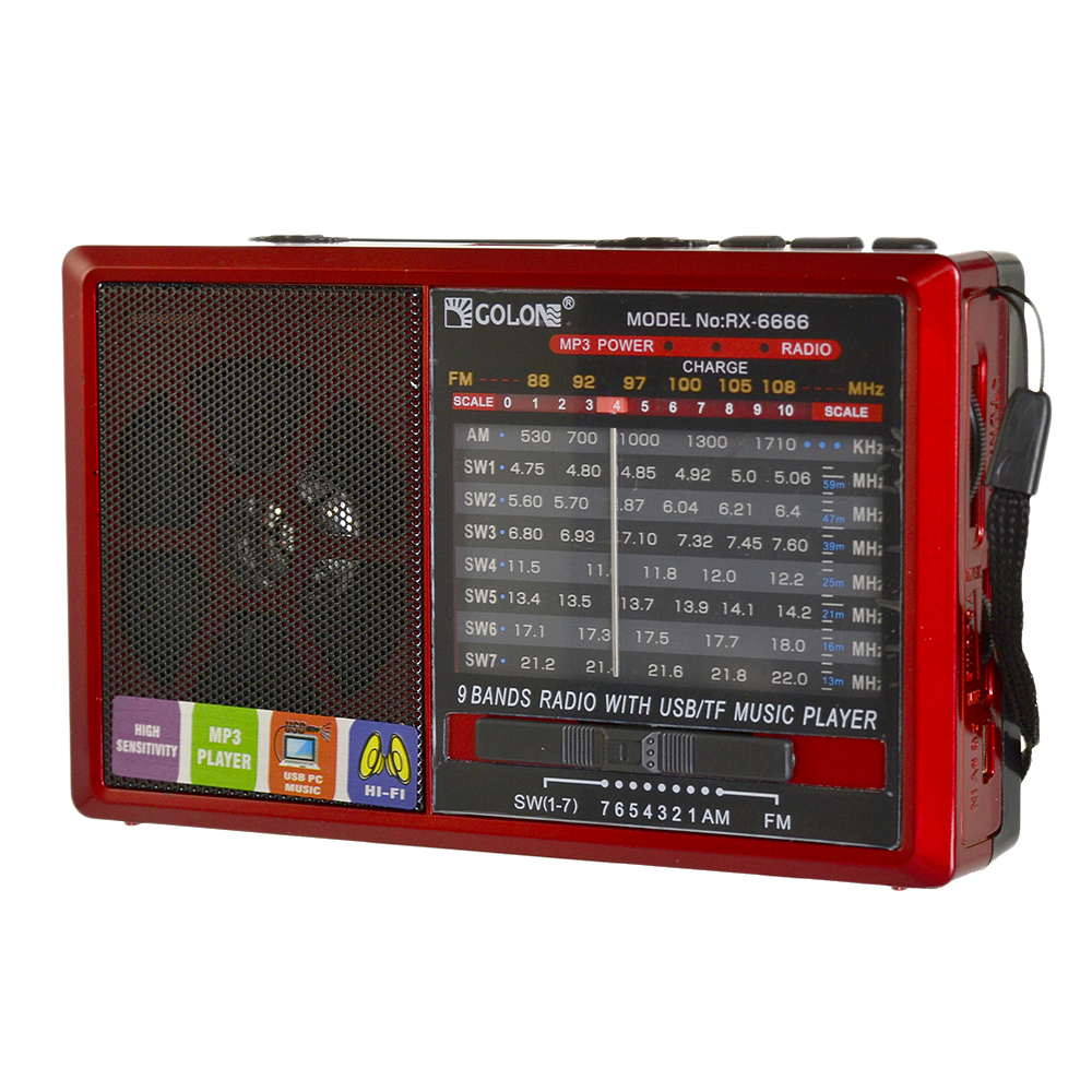 Компактный и недорогой радиоприемник. Эта небольшая по своим размерам модель RX BT6666 приятно порадует Вас своими функциональными возможностями. В первую очередь отметим наличие USB выхода, через который Вы сможете подключать флэшку и слушать с нее композиции. Так же радио оборудовано карт ридером, который считает файлы хранящиеся на SD карте. Другой особенностью данной модели является фонарик, который пригодится Вам будь до при отдыхе на природе или на даче.