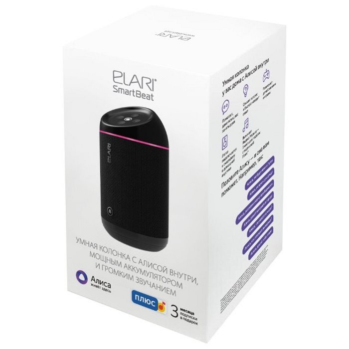 Подключив Elari SmartBeat к Интернету через приложение Яндекс, вы можете попросить Алису поставить шум костра или любую музыку, включить FM радио-станцию, завести будильник или вовремя напомнить вам о важном событии или встрече, рассказать о погоде, дать справку по другим вопросам. А если захотите, с Алисой можно просто поболтать. Дети в восторге от Алисы, которая может поиграть с ними в слова, в города, рассказать сказку, поставить любимый трек и многое другое. Портативность, автономность и элегантный дизайн колонки Elari SmartBeat делают её полезной в офисе, в автомобиле, на пикнике, дома – на кухне, в спальне, в гостиной, или даже в ванной. C мощной батареей 3200 мАч колонка работает до 5 часов без подзарядки в режиме Wi-Fi и до 8 часов через Bluetooth.