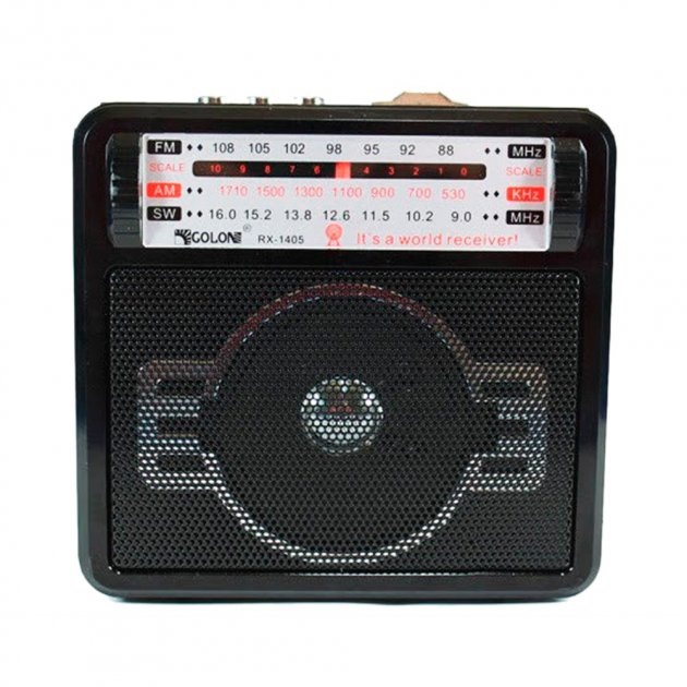 Радиоприёмник Golon RX-1405 – всеволновой портативный приёмник с аналоговым 3-х волновым тюнером, фонариком, встроенным аккумулятором и с питанием от 220V. Приёмник работает на волнах FM, AM, SW, воспроизводит музыку с USB флешек.