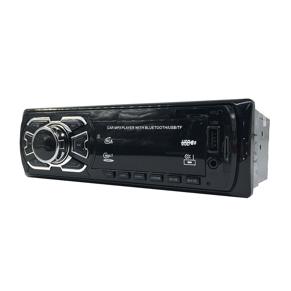 Автомагнитола E5-OLOM простая в использовании. Она воспроизводит мощный, громкий и в то же время чистый звук. В качестве источников музыкальных файлов она может использовать плееры, смартфоны, планшеты и другие совместимые устройства. Они легко подключаются через разъёмы USB, TF и AUX, которые расположены на панели. Для любителей радио в этой модели предусмотрен цифровой тюнер, позволяющий принимать передачи радиостанций, вещающих в диапазонах FM/MW/LW. Управление проигрывателем осуществляется при помощи поворотного регулятора и кнопочной панели. В комплект поставки модели входят руководство по эксплуатации, пульт ДУ и соединительные кабели.